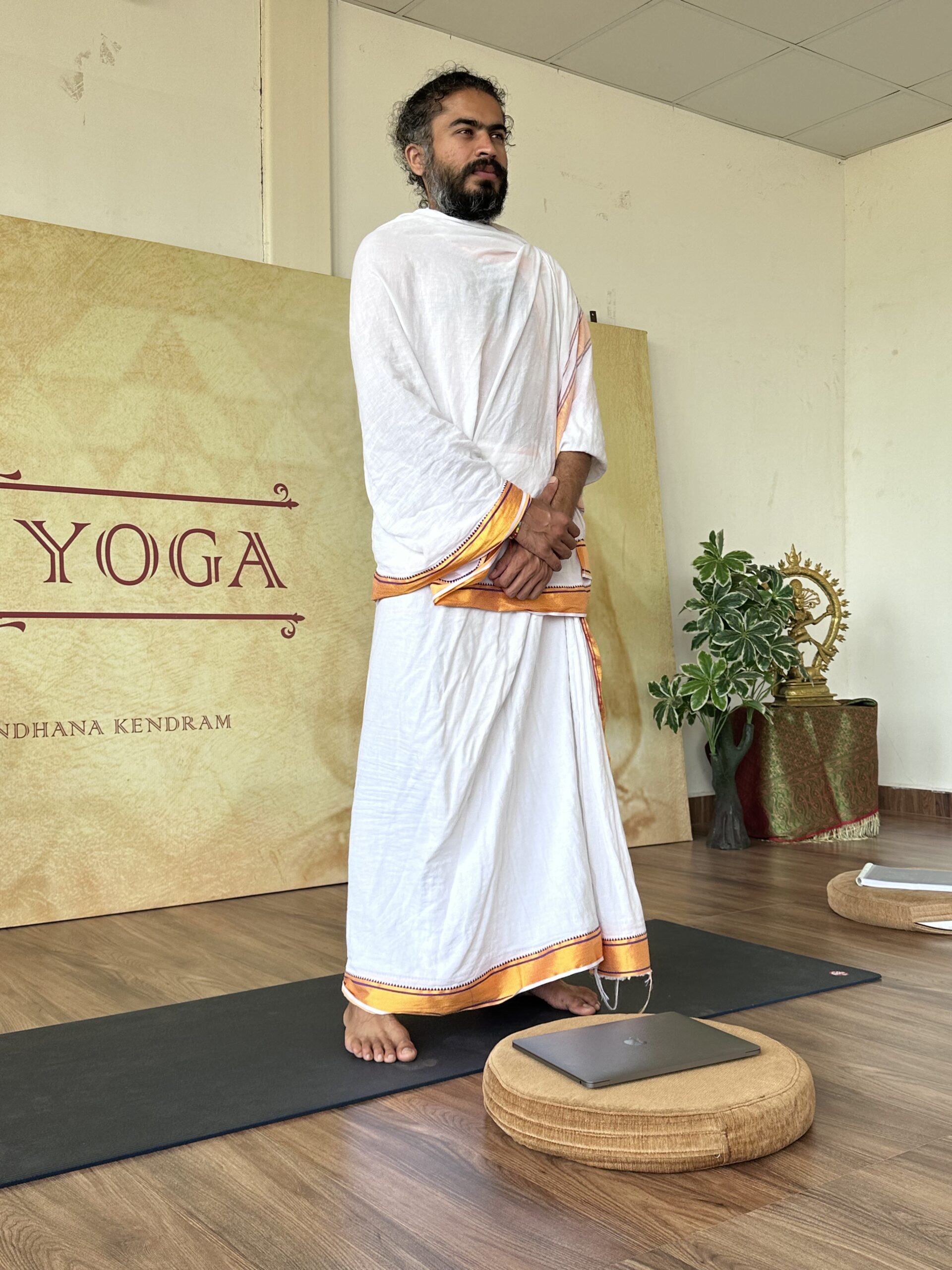 Students will experence two in person sessions per week with skilled and experienced teacher Amit G in studio including asana, pranayama and mediation practice, and two virtual sessions per week with our lead acharya and founder of Samavaya, Acharya Kamal livestreamimg from Haryana, India. Also students will have access to daily live virtual classes in the Abhyasa Shala.